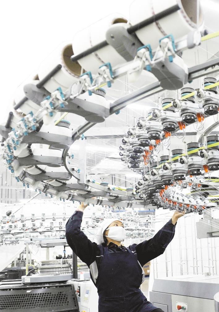 湖北嘉麟杰纺织品有限公司车间内,工人在紧张生产。