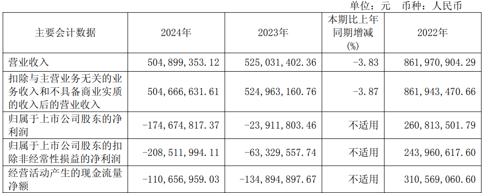 2023年、2024年,华盛锂电实现营业收入5.25亿元、5.05亿元;归属于上市公司股东的净利润为-2391.18万元、-1.75亿元;归属于上市公司股东的扣非净利润为-6332.96万元、-2.09亿元;经营活动产生的现金流量净额为-1.35亿元、-1.11亿元。