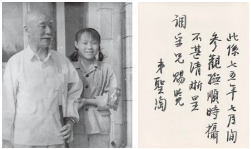此系七五年七月间参观抚顺时摄,不甚清晰,呈调孚兄赐览。弟叶圣陶。