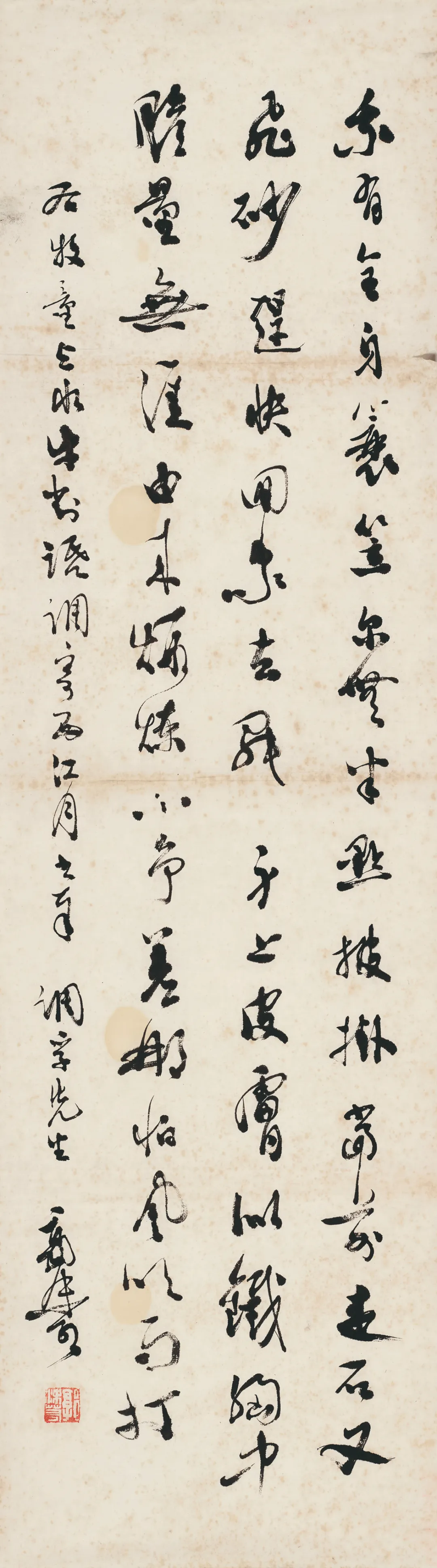 郭沫若(1892-1978)草书西江月 镜心 水墨纸本 63×17.5 cm 题识:右牧童与水牛对话。调寄西江月。书奉调孚先生,郭沫若。