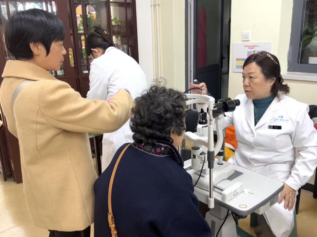 揭牌后,业务副院长裴锦云凭借其丰富的临床经验,为现场来宾带来了一场中老年眼健康知识科普讲座,获得了居民们的一致好评。活动的最后,我院医护团队架起专业设备,耐心细致地为到场居民进行双眼检查,并就检查结果进行一对一的专业解读。居民们纷纷表示,真切感受到了社区与医院带来的温暖与关怀。