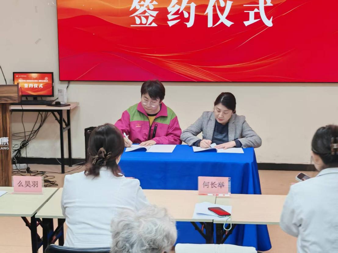 在与会嘉宾与社区居民的共同见证下,仪式进入了最激动人心的环节。我院副总经理何长举与社区领导共同签署了共建协议,标志着双方合作关系的正式确立。紧接着,我院业务副院长裴锦云与社区领导一同为“华厦光明行眼健康社区驿站”揭牌,现场响起热烈掌声,象征着这片守护居民光明的“新阵地”正式投入使用。