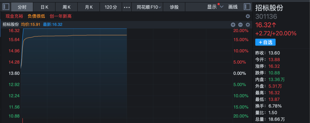 房地产股早间集体活跃,工程咨询服务方向领涨,板块指数高开高走大涨逾4%。招标股份开盘仅约2分钟垂直20%涨停,创年内新高;华建集团同样仅用约6分钟时间快速涨停,山水比德、启迪设计等亦涨停或涨超10%。