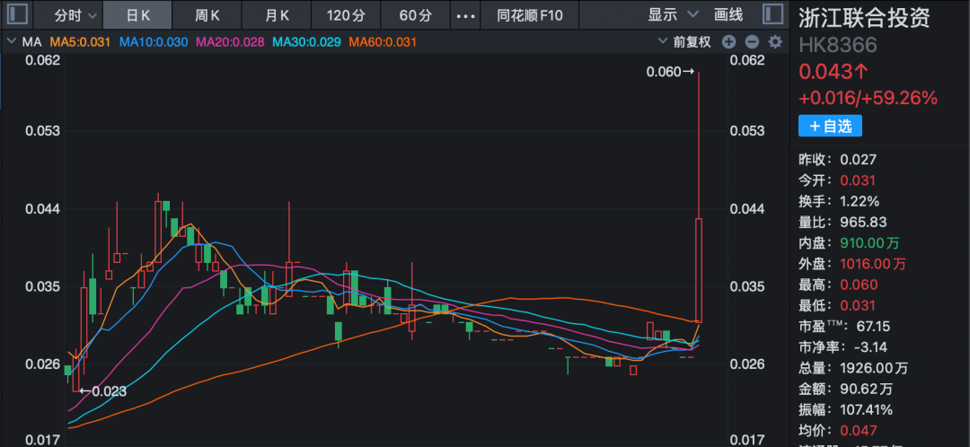 港股房地产股也大幅上扬。浙江联合投资盘中一度飙升逾122%,截至午间收盘涨幅收窄至59.26%;景瑞控股大涨50%;沈阳公用发展股份、宝发控股、龙升集团控股、邝文记等均涨超10%。