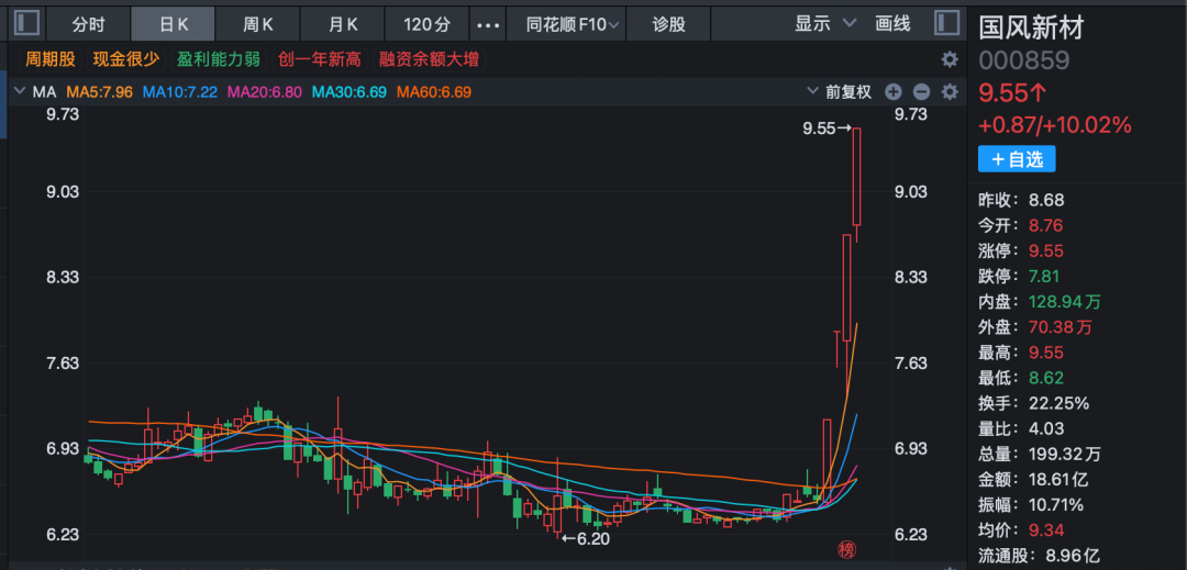 房产服务、租购同权、新型城镇、绿色建筑等细分板块也纷纷强势上攻。国风新材连续4日涨停,财信发展连续3日涨停,世联行连续2日涨停,国晟科技(维权)等也涨停或涨超10%。