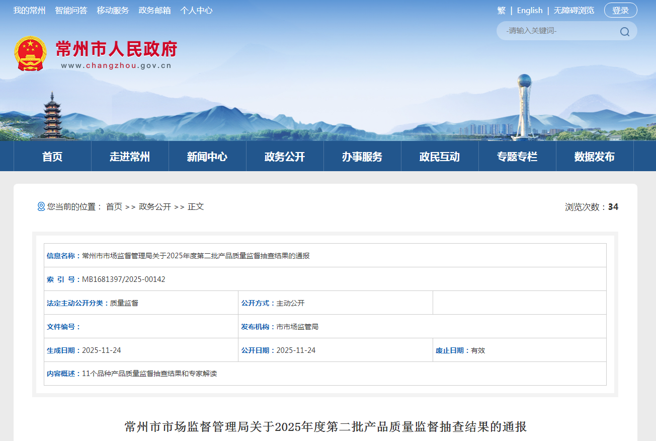 中国质量新闻网讯 据江苏省常州市人民政府网站消息,近日,常州市市场监督管理局通报2025年度第二批产品质量监督抽查结果。2025年7月起,该局根据相关规定,分别对常州市生产企业生产、实体店和电商销售的车用尿素、胶粘剂、女性内衣、非医用口罩、移动手机(老年手机)等11种产品进行产品质量监督抽查。
