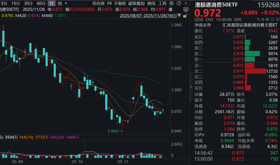 港股方面,新消费“纯”度更高的港股通消费50ETF(159268)收涨0.52%,全天成交额超2500万元!资金面上,近20日累计“吸金”超9000万元,规模同类持续领先!