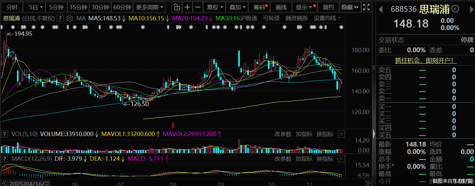 截至最新收盘日,思瑞浦股价报148.18元/股,总市值约为204.2亿元。