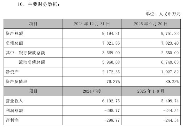 鄂尔多斯市承源商贸有限公司2024年净利润为亏损10.34万元,今年前三季度亏损23.82万元。截至今年9月30日,资产负债率从2024 年末的90.95%升至94.68%,截至目前仍有70万元担保余额。