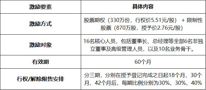 根据公告,本次激励计划采用股票期权与限制性股票相结合的模式,拟授予权益总计1200万份/股,约占公司当前总股本的1.37%。其中股票期权330份,行权价格定为5.51元/股;限制性股票870万股,授予价格2.76元/股,后者约为期权行权价的50%。