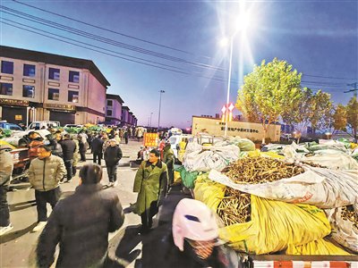 11月25日,农历十月初六,刚过零点,河北安国市西侧广场就开始喧闹起来——安国市地产中药材交易中心开市了。每逢农历一、六(即初一、初六、十一、十六、二十一、二十六),各地药商与买家汇聚于此,因夜间交易买卖,当地人也称为“鬼市”。