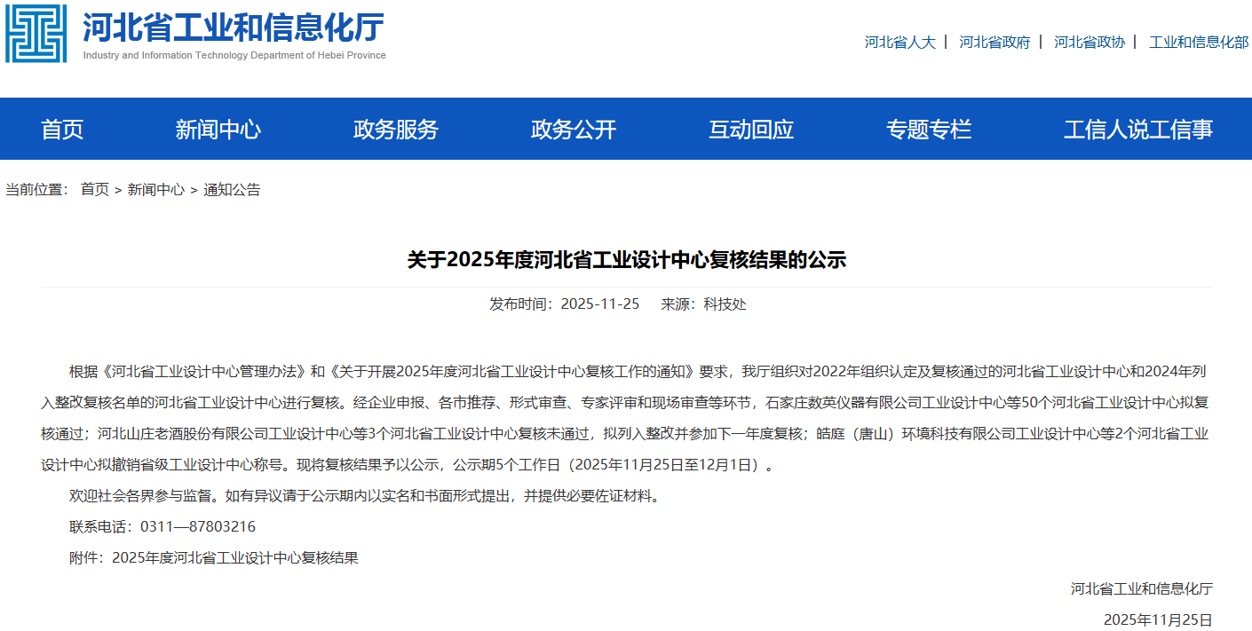 2025年度河北省工业设计中心复核结果
