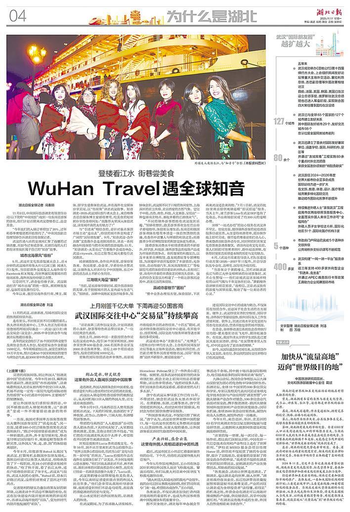 记者进行了系统学习和梳理,获取权威数据;在油管、脸谱等海外社交平台以“China Travel”“Hubei”“Wuhan”等关键词进行搜索,筛选出一批外国网友发布的湖北游记、武汉游记,结合评论区网友观点,具象化为一个个典型案例。