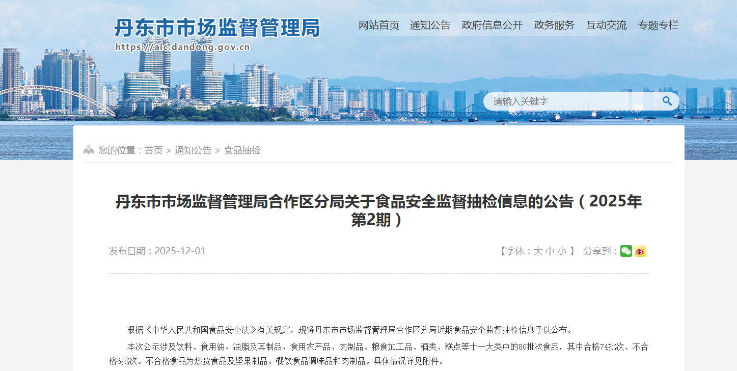根据《中华人民共和国食品安全法》有关规定,现将丹东市市场监督管理局合作区分局近期食品安全监督抽检信息予以公布。