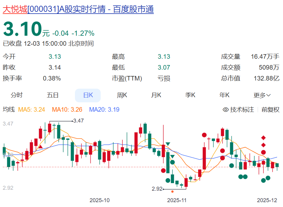 12月3日晚间,大悦城(000031.SZ,股价3.10元,市值132.9亿元)发布公告称,控股子公司武汉地悦房地产开发有限公司(以下简称武汉地悦)因长达六年的土地交付争议,已将武汉市蔡甸区自然资源和城乡建设局(以下简称蔡甸区资建局)诉至湖北省武汉市蔡甸区人民法院,案件已获立案受理,案号(2025)鄂0114行初136号,目前尚未开庭。此次诉讼涉及金额超10亿元。