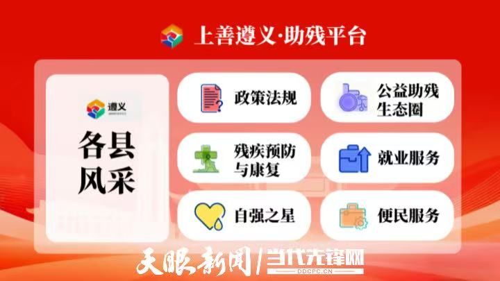 专区汇聚七大功能版块,提供一站式集成服务。专区精心设置了“政策法规”“公益助残生态圈”“残疾预防与康复”“就业服务”“自强之星”“便民服务”及“各县风采”等七大核心版块。这些内容不仅精准对接了残疾人在政策咨询、康复指导、就业帮扶、文化赋能等方面的迫切需求,更将遵义市残联的线下服务资源与贵广网络的线上传输渠道有机结合,实现了助残服务从“路上跑”到“线上点”的升级,让关爱跨越时空障碍,精准送达家庭客厅。