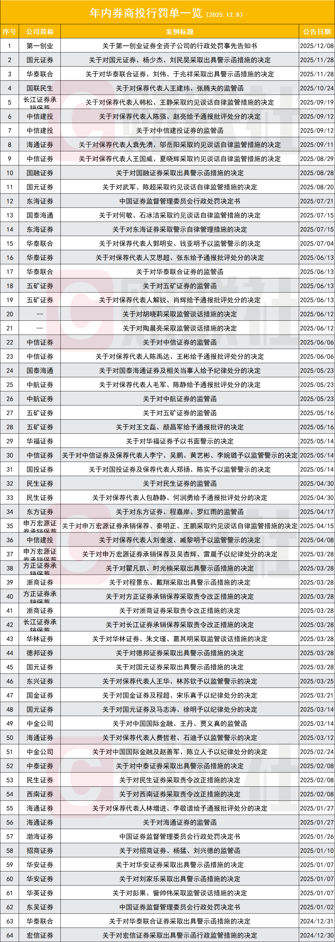 部分券商并非传统投行业务大户,但相关罚单也并不少见,反映出投行业务质量问题已形成行业挑战。