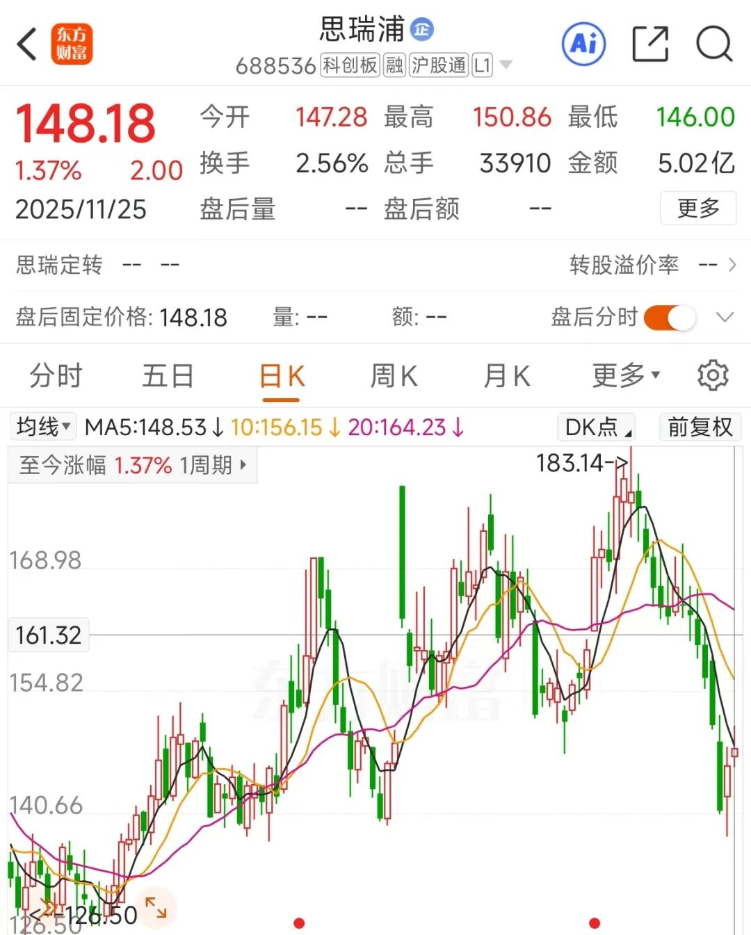 截至停牌前最后一个交易日,思瑞浦收盘价为148.18元/股,总市值为204.2亿元。