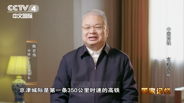 陈宏伟 中铁十七局董事长:京津城际是第一条350公里时速的高铁。它不光提供了经验,还定下了标准。从京津城际以后,十七局也建设了很多高铁的工程,都是用的这套标准,这套规范。