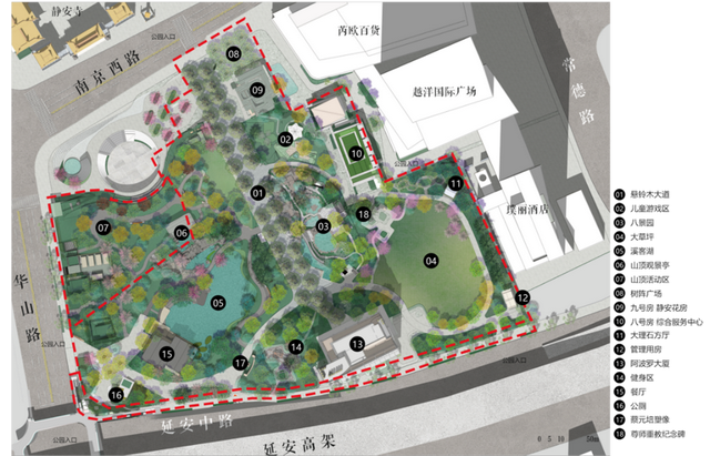 1954年,静安公园由租界时期的公墓改建而成。上世纪九十年代末,配合周边地铁和高架等工程修建,静安公园曾开启大规模改造,形成了如今东为八景园、西为假山瀑布的景观格局。经过将近30年时间,静安公园如今再次迎来大规模的改造。