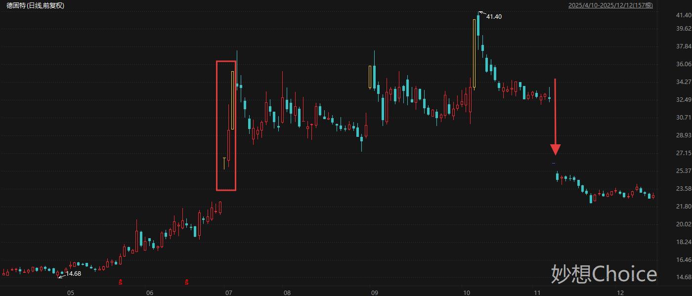 此前,德固特7月13日盘后公告,筹划购买浩鲸科技100%股份,次日复牌20CM涨停,随后于7月15日和7月16日分别收涨10.4%和20%。时隔近四个月,德固特11月7日盘后公告,拟终止购买浩鲸科技100%股权,次日(下一个交易日即11月10日)应声20CM跌停。