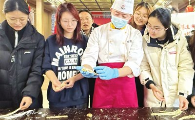 “搓条三分紧,拧花七分松。”这不仅是天津桂发祥十八街麻花老师傅的口诀,如今也成了天津外国语大学一群“00后”课堂外的“新功课”。近日,在河西区西岸非遗体验馆,他们放下手机,卷起袖口,亲手“破译”这根麻花里的“通关密码”:一家老字号何以“玩转”近百年?