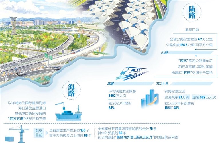 纵横四海,通达全球;人享其行、物畅其流。不断完善和升级“陆海空”建设正是海南推进基础设施建设的一个缩影。
