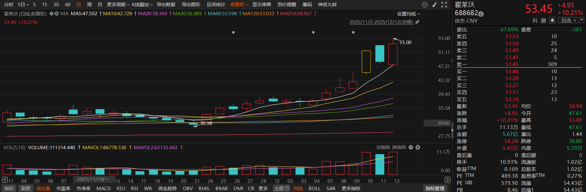 霍莱沃周二发布机构调研纪要表示,公司卫星测试系统业务已构建覆盖“元器件-部组件-分系统-整星”的全链条测试产品矩阵,与航天科技集团等体制内卫星研制单位,以及众多体制外卫星制造商、卫星载荷制造商等达成了深度且稳定的合作关系。今年以来,受益于商业航天卫星生产需求的加速推进,公司的卫星测试系统订单高速增长。订单主要来源于商业航天卫星的整星及载荷制造厂商、测试服务机构,其中整星制造商的贡献最大。二级市场上,霍莱沃周三收盘20CM涨停,周五收盘涨超10%。