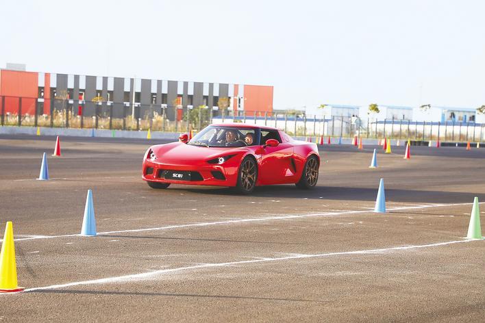 小米生态链企业工匠派汽车打造的新能源超跑在仙桃高新区试车场试车。