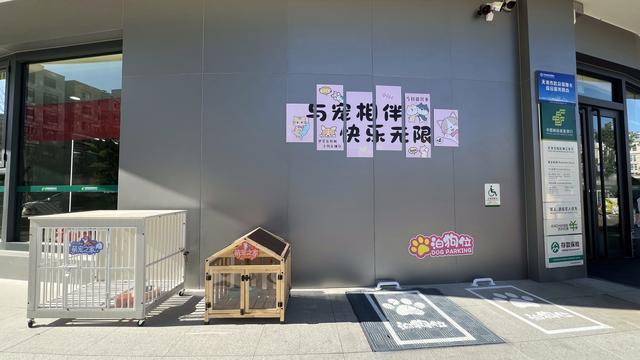 “PET+”加持的不仅是空间友好,更是服务理念的友善与包容。支行外部对中型以上犬只设有“泊狗位”,内部提供宠物推车,并专门规划了每日消毒的宠物专属安置空间,为携宠客户提供无忧的业务办理体验。通过整体营造温馨、治愈的服务氛围,将宠物友好理念深植于空间细节之中,让责任与温暖在每一处关怀中自然流露。