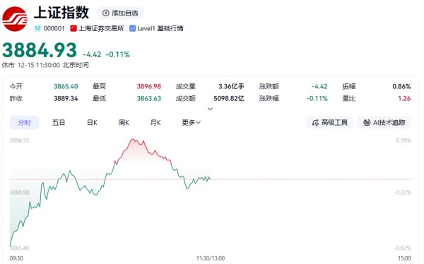 A股市场今天上午整体窄幅震荡,上证指数一度翻红。截至中午收盘,上证指数下跌0.11%,深证成指下跌0.71%,创业板指下跌1.29%。