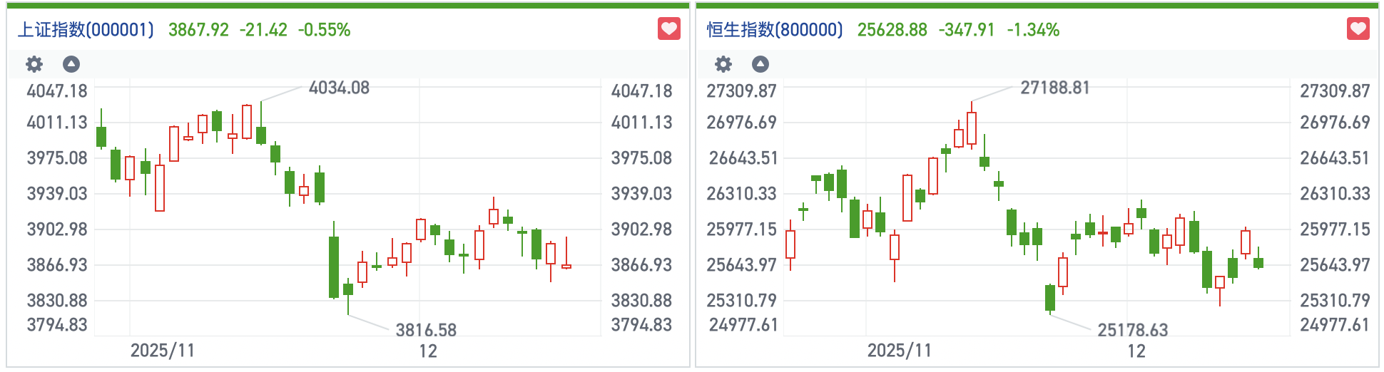 一方面,美联储12月降息落地,但市场下调了明年美联储的降息预期,从中长期来看对港股风偏有影响。