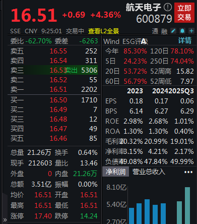 个股方面,航天电子高开超4%,公司公告,拟7.27亿元增资控股子公司航天火箭公司。