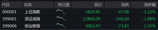 截至午盘,沪指跌1.22%,深成指跌1.88%,创业板指跌2.35%。