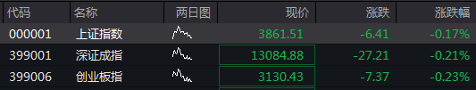 沪指低开0.17%,深成指低开0.21%,创业板指低开0.23%。