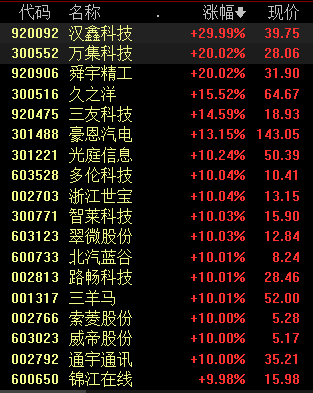 09:52北证50指数涨逾2%,云星宇、美之高、三友科技、汉鑫科技涨超10%。