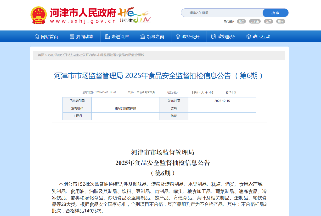 | 河津市2025年第六期食品安全监督抽检产品合格信息 | |||||||||||||