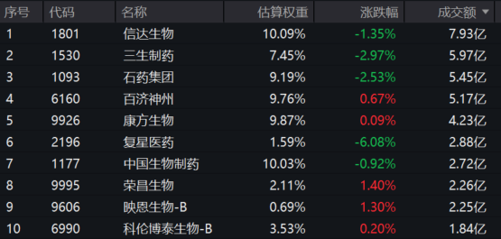 港股通创新药ETF(159570)标的指数权重股多数飘绿:复星医药跌超6%,三生制药、石药集团跌超2%,信达生物跌超1%,中国生物制药微跌。上涨方面,荣昌生物、映恩生物-B涨超1%。