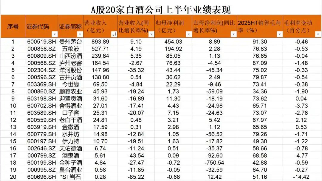 2025年上半年,A股20家上市酒企只有6家增长,14家下滑、3家亏损,并且,增长的都是个位数。今年三季度,多家企业营收腰斩,仅贵州茅台和山西汾酒两家企业维持着前三季度营收、净利润“双增长”。