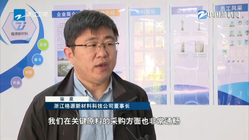 浙江格源新材料科技公司董事长 徐泉:我们在关键原材料的采购方面也非常通畅,那应用端也有完善的产业链,会为公司长期的发展奠定坚实基础。