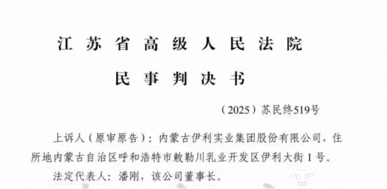 2025年10月,江苏高院就伊利诉蒙牛不正当竞争案作出终审判决,认定蒙牛“精选牧场”包装与伊利“金典”高度近似构成侵权,判令其赔偿经济损失及维权开支共计500万元。