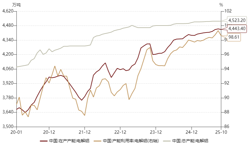 铝:供需趋紧,铝企成现金奶牛。需求侧来看,财政或持续向基建投资上发力,叠加以旧换新政策,有望带动交运、家电等传统需求提振;新兴需求来看,新能源汽车、光伏领域、AI等刺激铝需求;供给侧来看,国内电解铝产能限制严格,当前产能触顶,截至10月末,国内电解铝开工率已高达98.6%,供给约束明显。