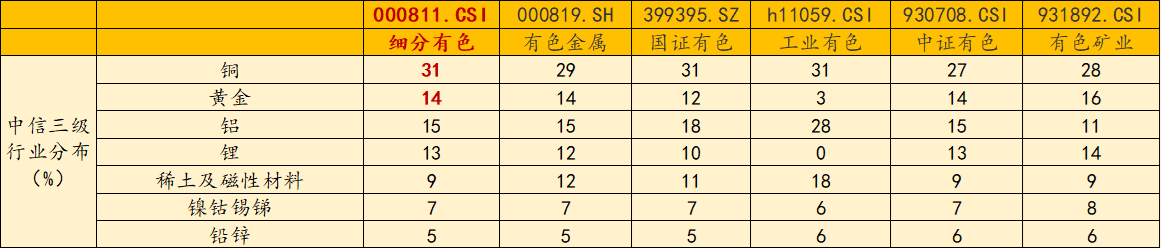 风险提示:基金有风险,投资需谨慎。投资人应当阅读《基金合同》《招募说明书》《产品资料概要》等法律文件,了解基金的风险收益特征,特别是特有风险,并根据自身投资目的、投资经验、资产状况等判断是否和自身风险承受能力相适应。基金管理人承诺以诚实信用、谨慎尽责的原则管理和运用基金资产,但不保证基金一定盈利或本金不受损失。以上基金属于中等风险等级(R3)产品,适合经客户风险承受等级测评后结果为平衡型(C3)及以上的投资者。请投资者关注指数化投资的风险以及集中投资于细分有色指数成分股的持有风险,请关注部分指数成分股权重较大、集中度较高的风险,请关注指数化投资的风险、ETF运作风险、投资特定品种的特有风险等。文中提及个股仅为指数成份股客观展示列举,本文出现信息只作为参考,投资人须对任何自主决定的投资行为负责。本文中的任何观点、分析及预测不构成对阅读者任何形式的投资建议。