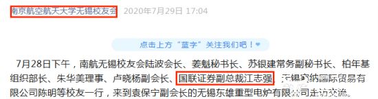 江志强出生于1970年5月,据悉他拥有工商管理硕士学位。不过运营商财经网在梳理时发现,在2020年7月南京航空航天大学(简称南航)无锡校友会发布的一篇文章中,江志强曾以时任国联证券副总裁的身份出现。