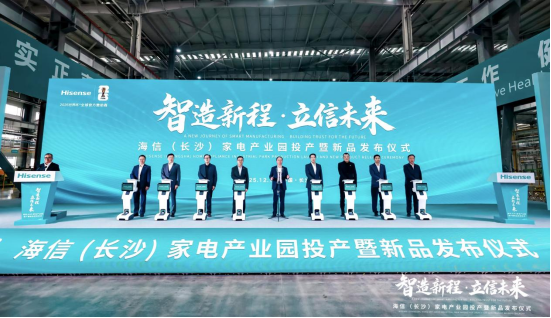 12月16日,海信(长沙)家电产业园投产暨新品发布仪式在湖南长沙举行。