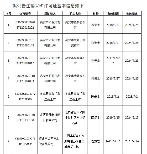 “据我所知,上面一些矿的储量开采得差不多了。”上述熟悉江西锂云母矿的业内人士表示,且这些拟注销矿证几乎都已到期。