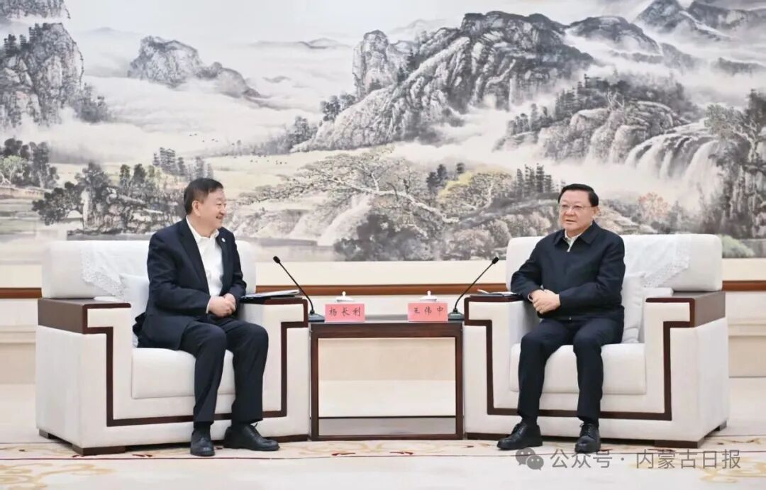 王伟中代表自治区党委和政府对杨长利一行表示欢迎,向中广核长期以来为内蒙古经济社会发展作出的贡献表示感谢,并介绍了全区经济社会发展情况。他说,当前,我们正在深入学习贯彻党的二十届四中全会和中央经济工作会议精神,全面贯彻落实习近平总书记对内蒙古系列重要讲话重要指示精神,全力做好现代能源经济这篇文章,在扛牢能源保供责任的前提下,加快推动传统能源转型升级,着力提高新能源开发利用水平,积极开辟能源领域新战场,更好保障国家能源安全。面向“十五五”,内蒙古将坚持风光水核等多能并举,持续提高新能源供给比重,推动新增用电量主要由新增新能源发电满足。希望双方围绕风光氢储、核能开发利用、光伏治沙等领域深挖合作潜力,拓展合作空间,推动国家重要能源和战略资源基地建设不断取得新成效。