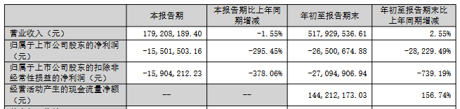 2025年1-9月,公司实现营业收入5.18亿元,同比增长2.55%;归属于上市公司股东的净利润为-2,650.07万元,上年同期为9.42万元;归属于上市公司股东的扣除非经常性损益的净利润为-2,709.49万元,上年同期为-322.87万元;经营活动产生的现金流量净额为1.44亿元,同比增长156.74%。