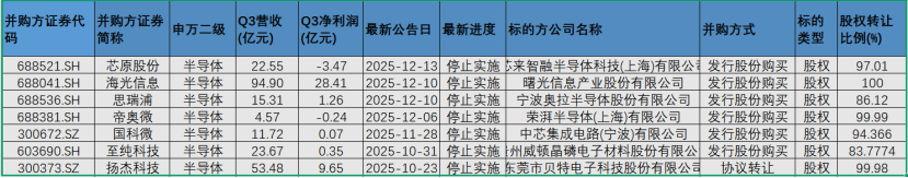 芯原股份与芯来智融的重组终止并非个例。近期,扬杰科技、至纯科技、国科微等多家A股半导体公司资产重组宣布“告吹”。其中,进入12月以来,已有海光信息、思瑞浦、帝奥微相继停止并购重组。