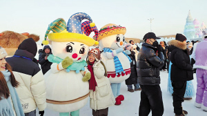 本报讯(记者 李佳琪文/摄)来哈尔滨冰雪大世界,不仅能看到雄伟、壮观的冰雪建筑,打卡精妙绝伦的点位,还能跟着园区“萌宠”蹦蹦冰雪野迪、追忆童年IP。